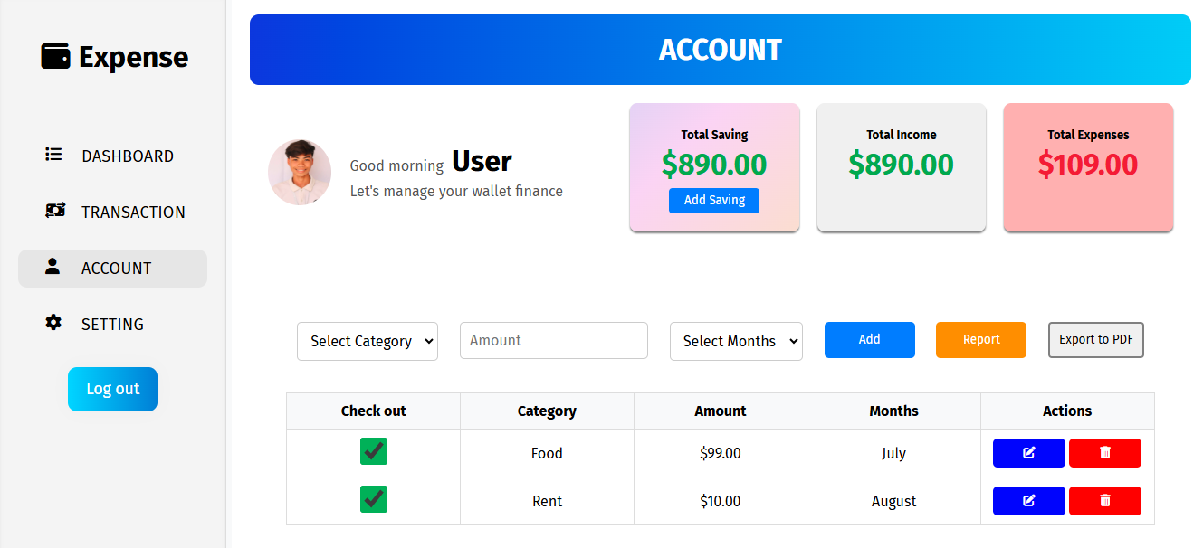 Responsive website app designed, Track income, expense, balance