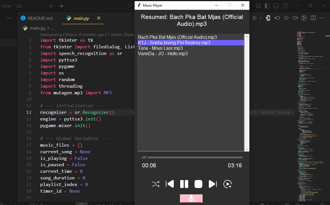 Python-based music player with speech recognition control